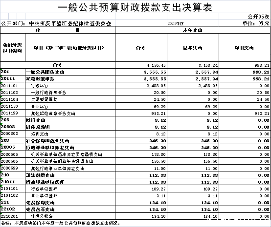 中共重庆市垫江县纪律检查委员会2021年度部门决算情况说明