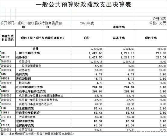 重庆市垫江县政治协商委员会2021年度部门决算情况说明(本级)