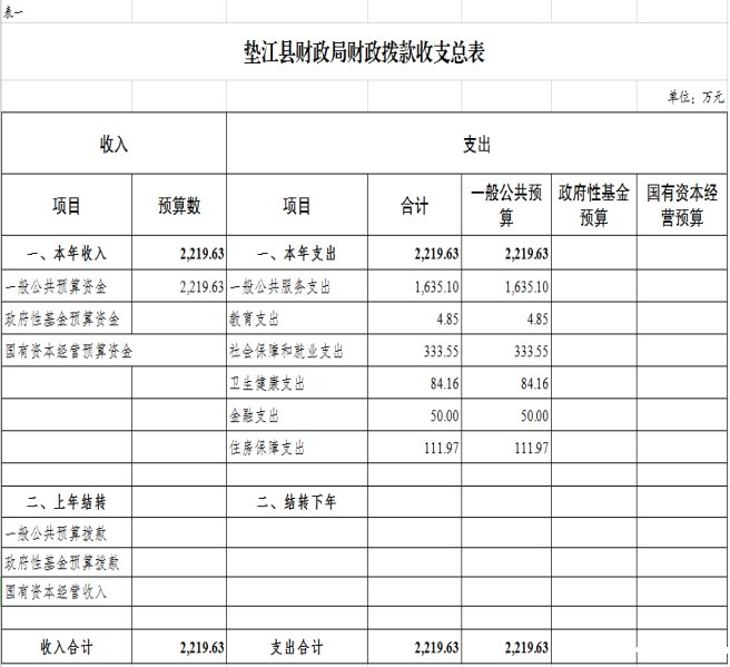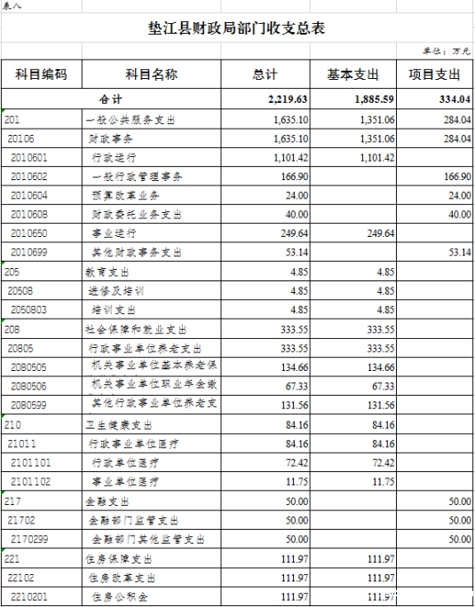 2. 垫江县财政局一般公共预算财政拨款支出预算表