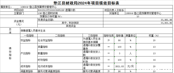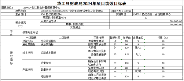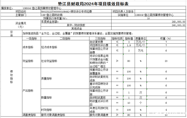 10. 垫江县财政局2024年部门和单位整体绩效目标表