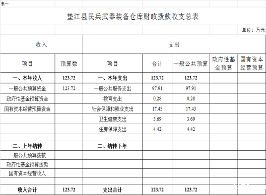 附表:1.垫江县民兵武器装备仓库财政拨款收支总表