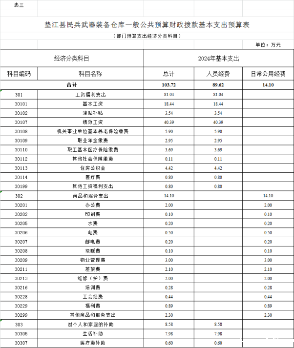 3. 垫江县民兵武器装备仓库一般公共预算财政拨款基本支出预算表