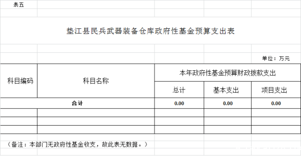 5. 垫江县民兵武器装备仓库政府性基金预算支出表