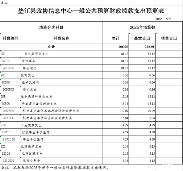 2.垫江县政协信息中心一般公共预算财政拨款支出预算表