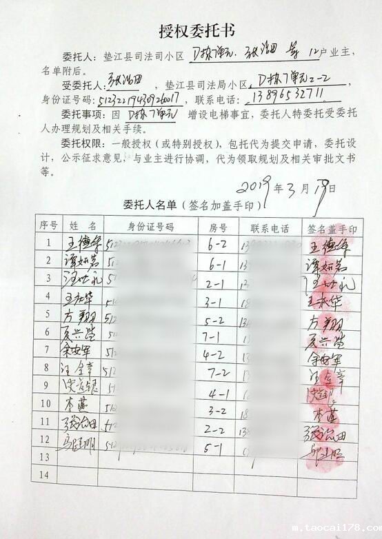 若你单位或个人有意见和建议,请注明身份(单位名称、机构代码证及法定代表人身份证明/个人姓名及身份证复印件)、联系电话和邮寄地址,在2019年4月9日前将书面意见等证明涉及其利害关系的材料邮寄或直接提交至垫江县规划和自然资源局。逾期未提出的,视为同意增设电梯事宜或自动放弃权利。
