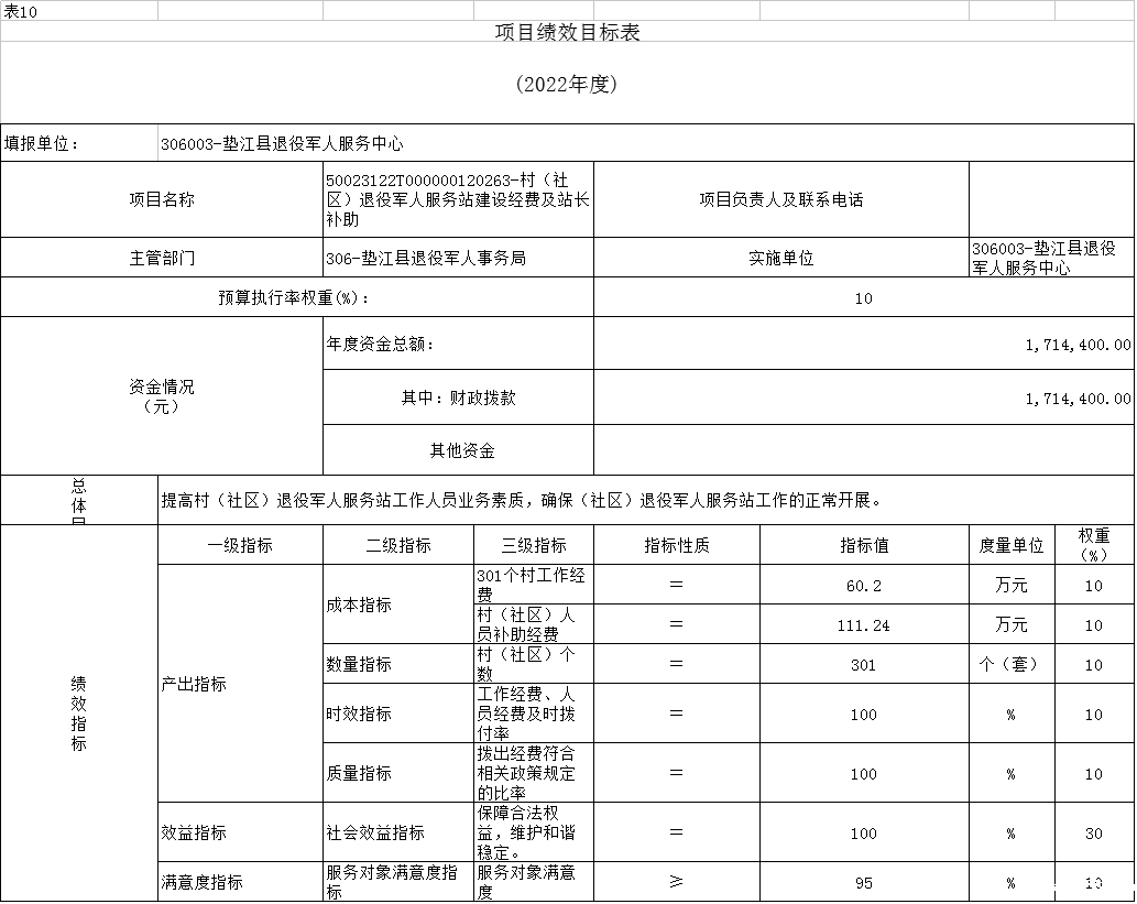 (三)绩效目标设置情况。2022年项目支出均实行了绩效目标管理,涉及一般公共预算当年财政拨款171.44万元。