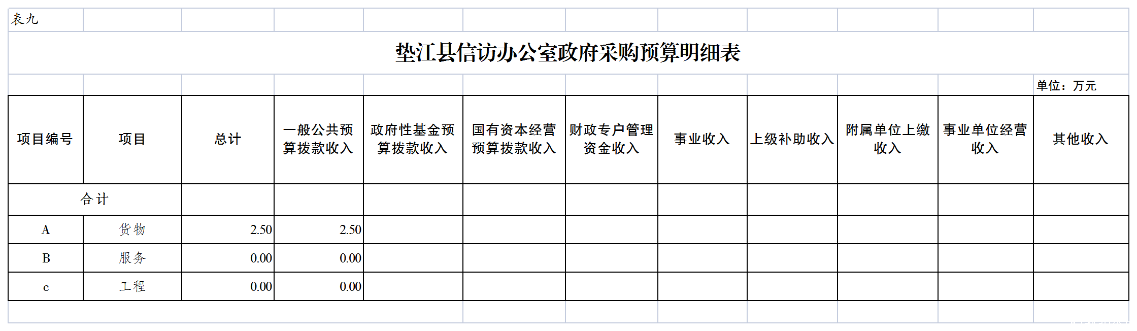 (二)政府采购情况。所属各预算单位政府采购预算总额2.50万元:政府采购货物预算2.50万元、政府采购工程预算0万元、政府采购服务预算0万元;其中一般公共预算拨款政府采购2.50万元:政府采购货物预算2.50万元、政府采购工程预算0万元、政府采购服务预算0万元。