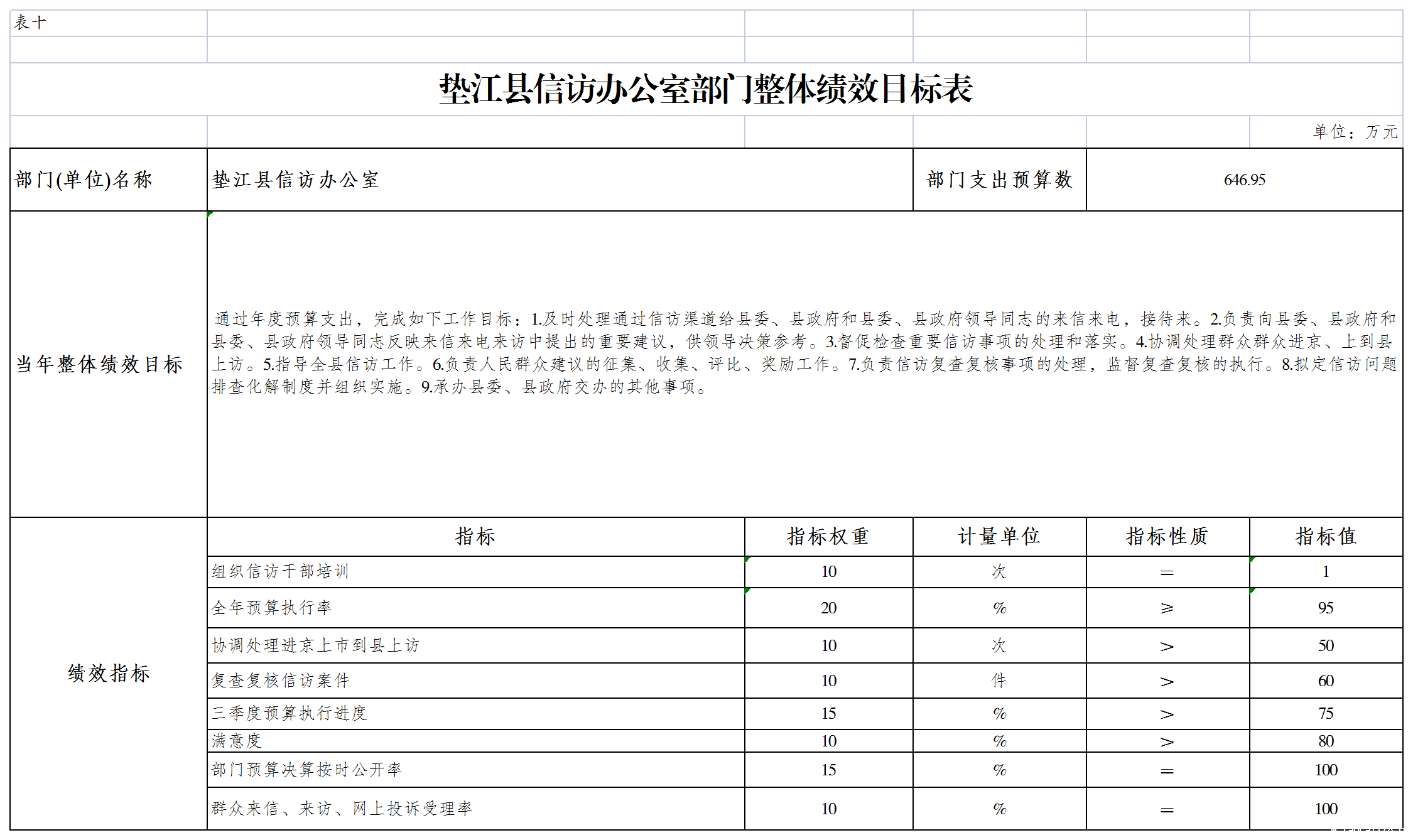 垫江县信访办公室内设机构4个:综合科、接访科、督办科、信访稳定协调科4个职能科室。从预算单位构成看,纳入本部门2020年度决算编制的二级预算单位主要包括垫江县信访投诉受理中心。垫江县信访办下属全额拨款事业单位垫江县信访投诉受理中心(二级单位)。