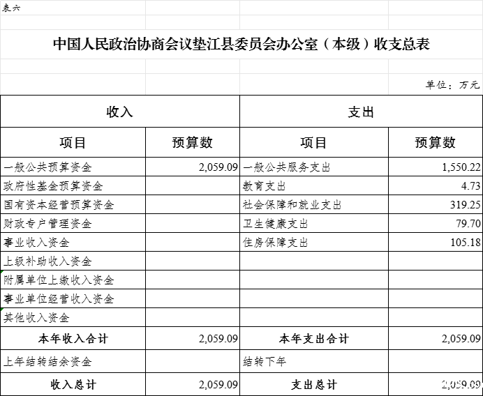 6. 中国人民政治协商会议垫江县委员会办公室(本级)收支总表