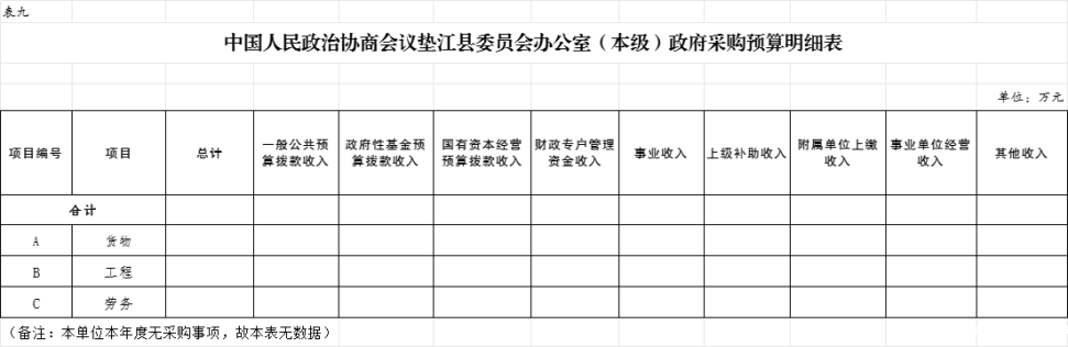 9.中国人民政治协商会议垫江县委员会办公室(本级)政府采购明细表