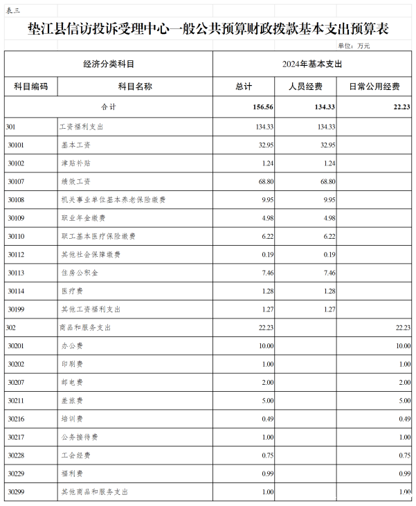 3. 垫江县信访投诉受理中心一般公共预算财政拨款基本支出预算表