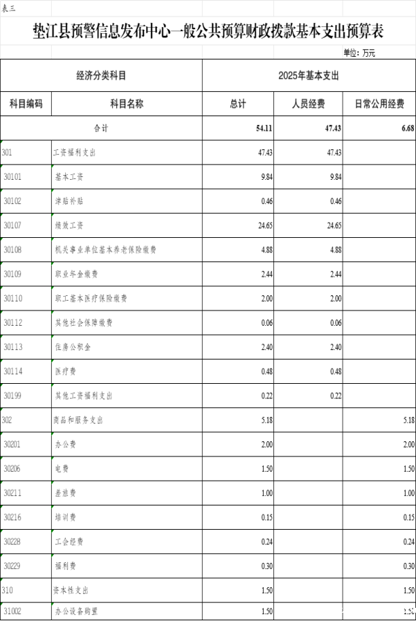 3.垫江县预警信息发布中心一般公共预算财政拨款基本支出预算表