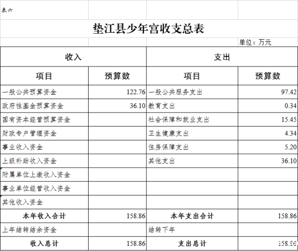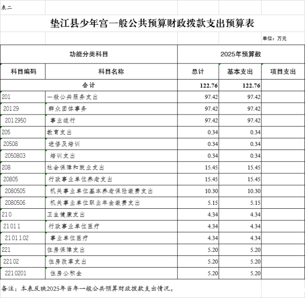 2.垫江县少年宫一般公共预算财政拨款支出预算表