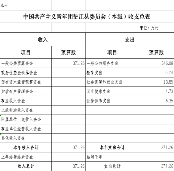 6.中国共产主义青年团垫江县委员会(本级)收支总表