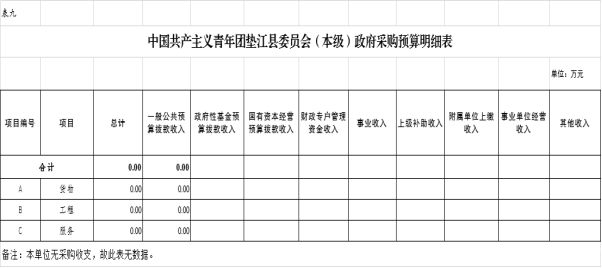 9.中国共产主义青年团垫江县委员会(本级)政府采购明细表