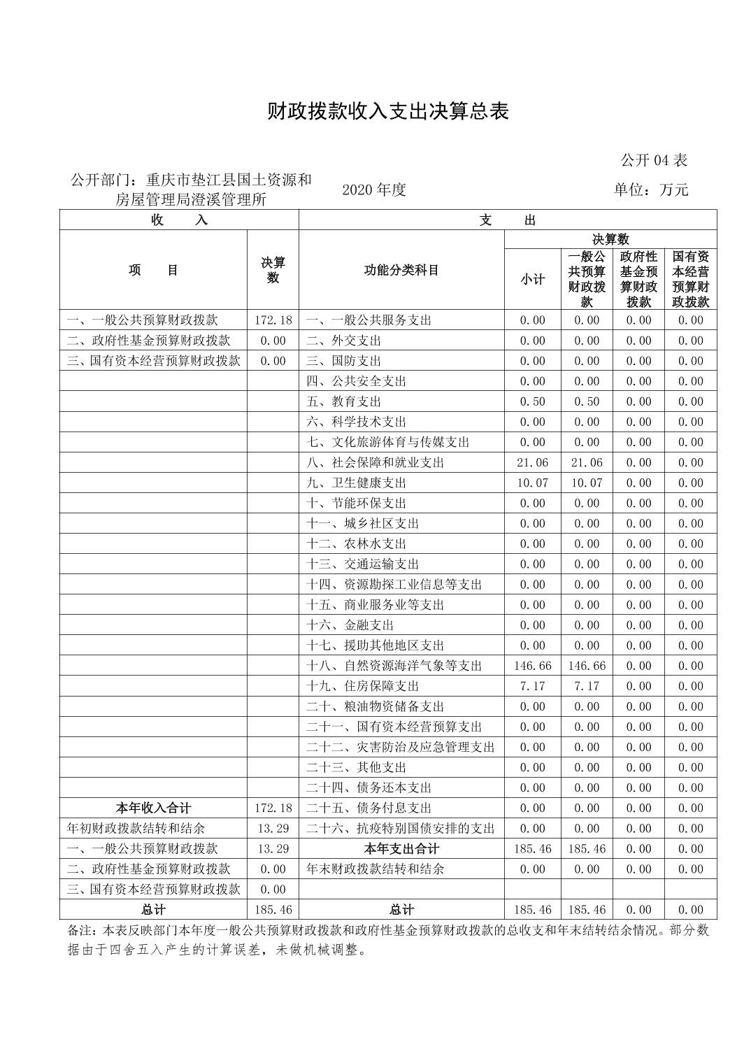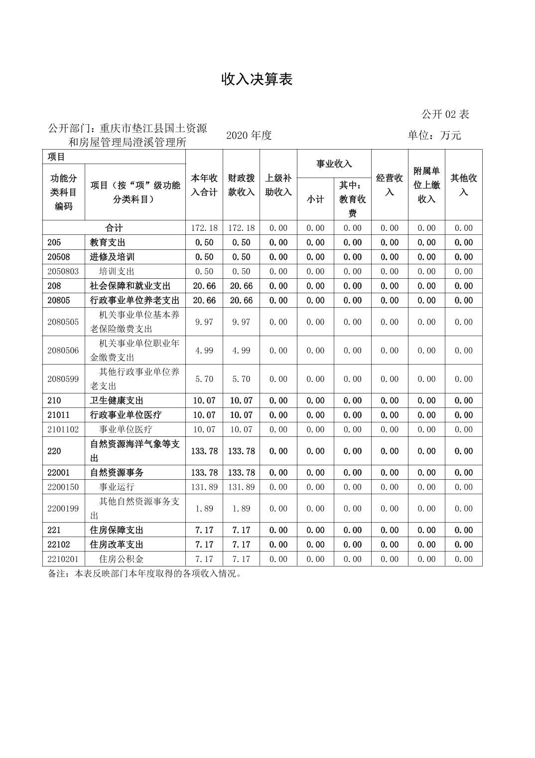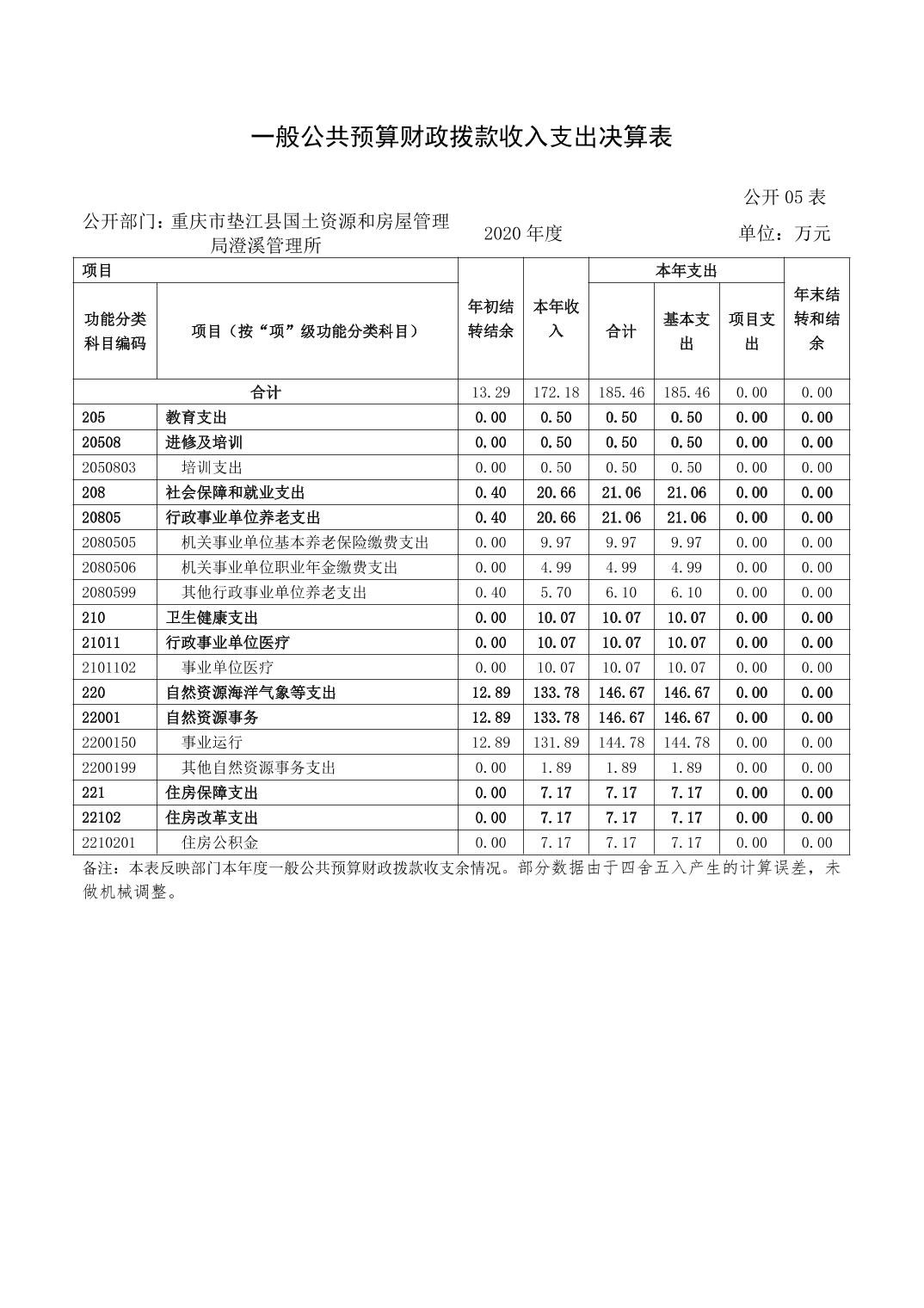 重庆市垫江县国土资源和房屋管理局澄溪管理所2020年度部门决算情况说明