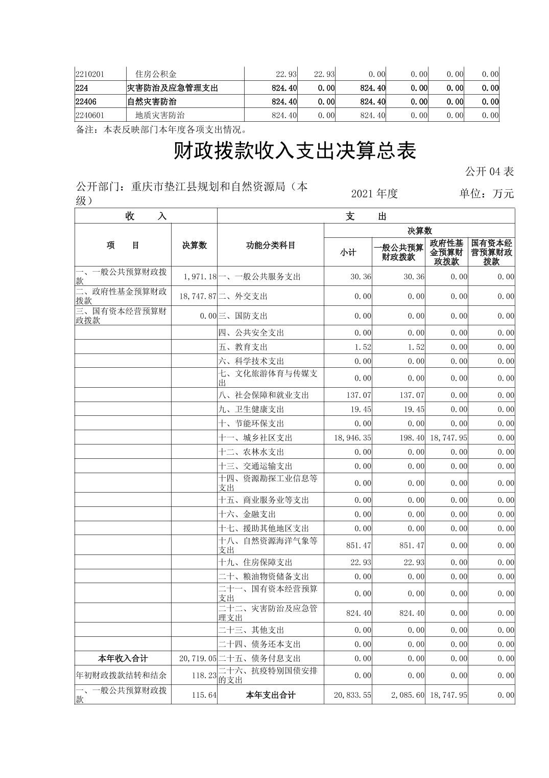 您当前的位置:首页>规划和自然资源局>政务公开>法定主动公开内容>预算/决算>决算公开