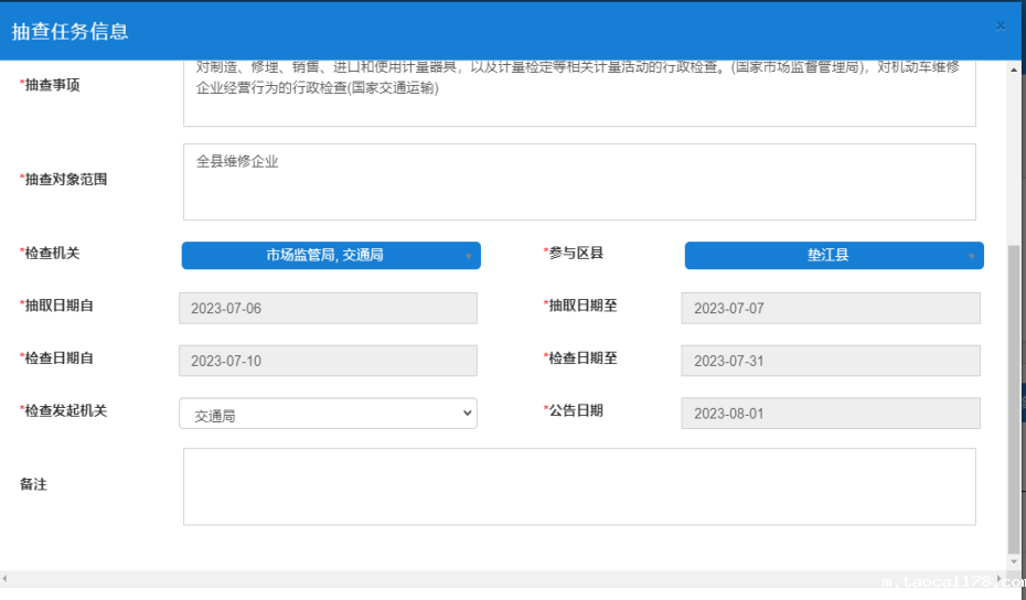 附件:重庆“双随机、一公开”监管平台抽查任务信息