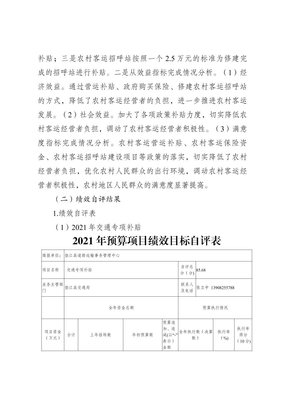 垫江县道路运输事务管理中心2021年度部门决算情况说明