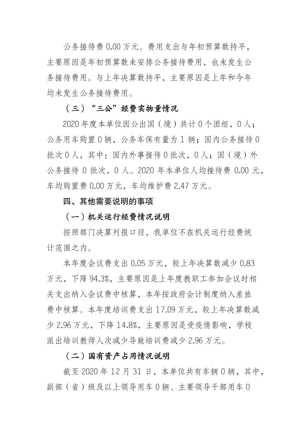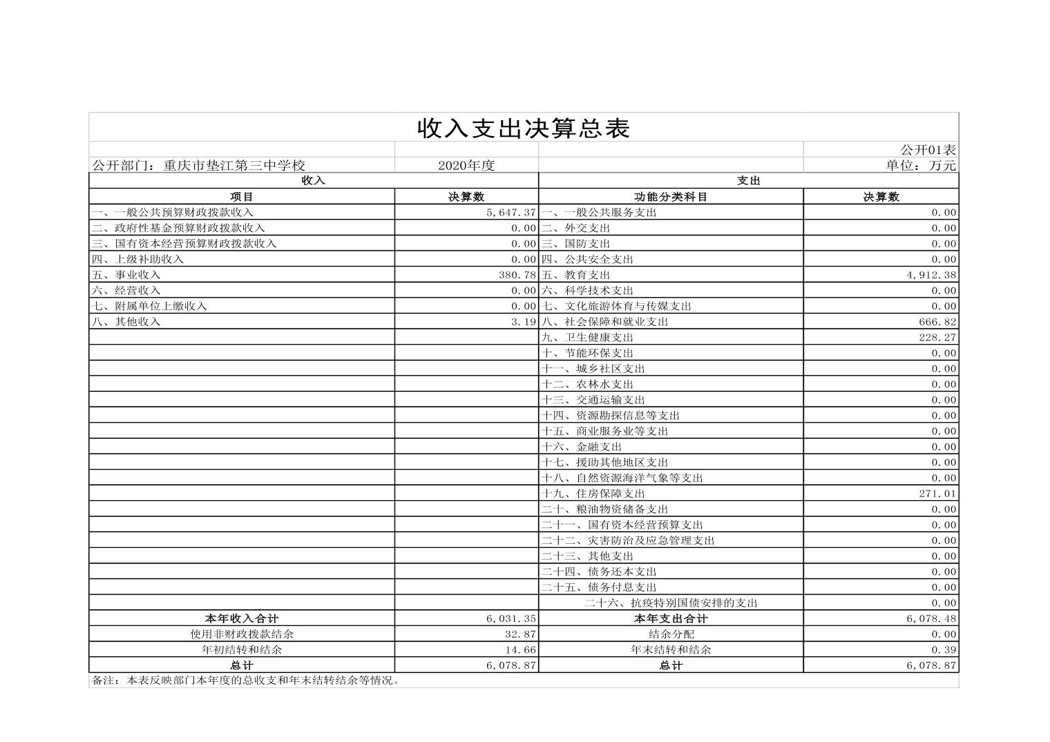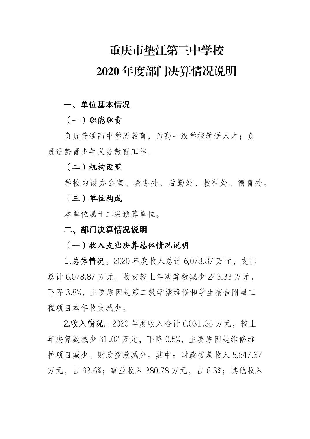 重庆市垫江第三中学校2020年决算公开