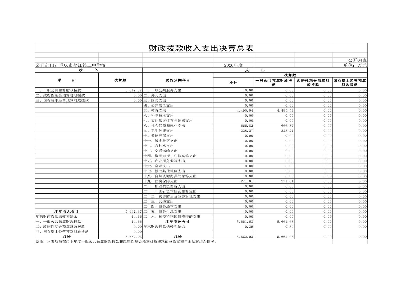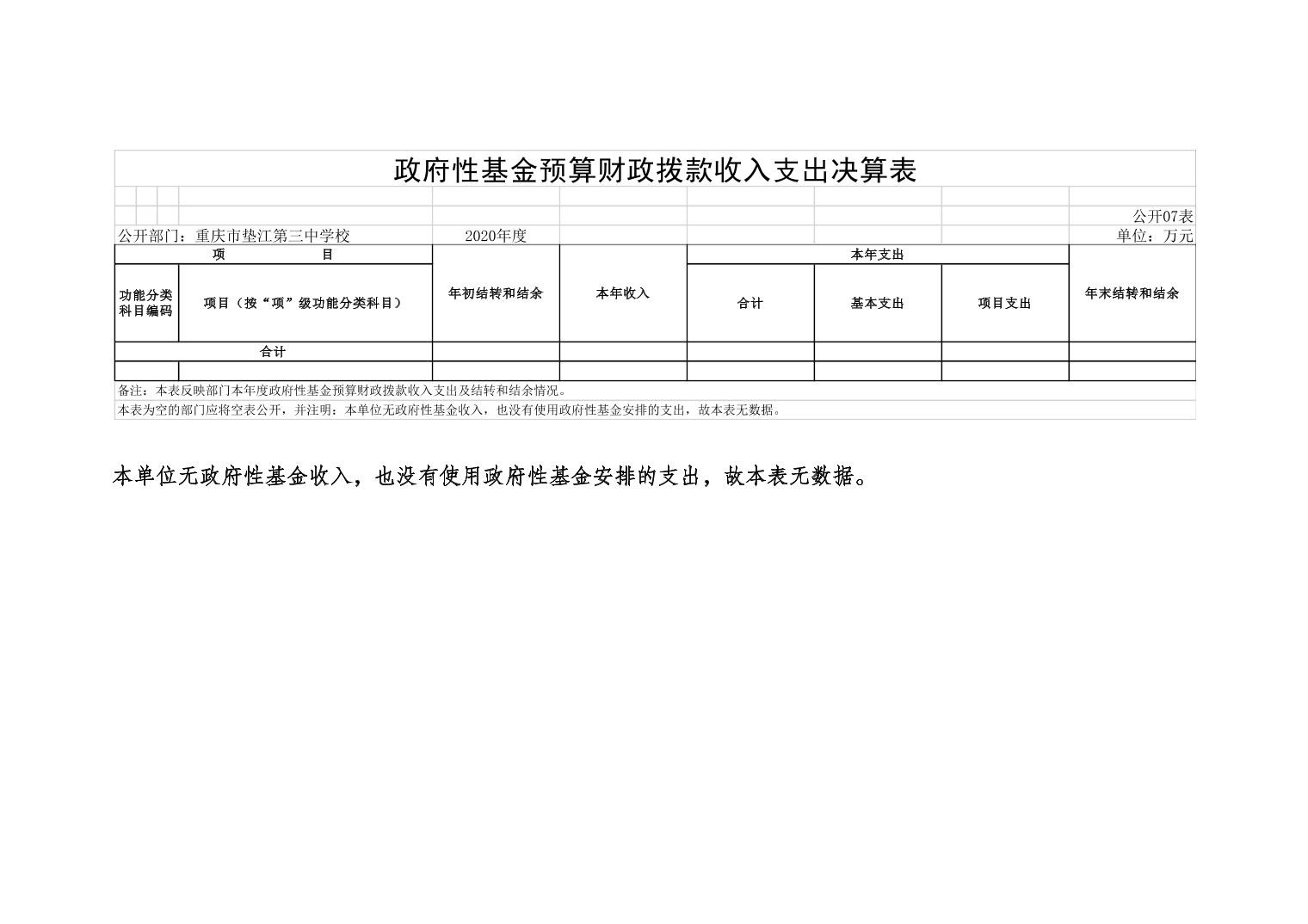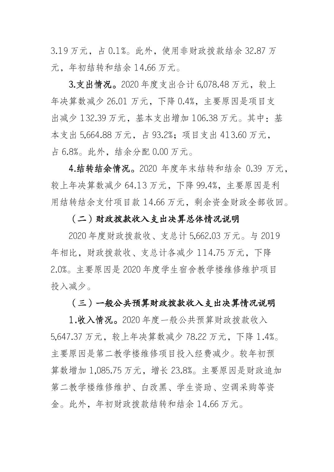 重庆市垫江第三中学校2020年决算公开