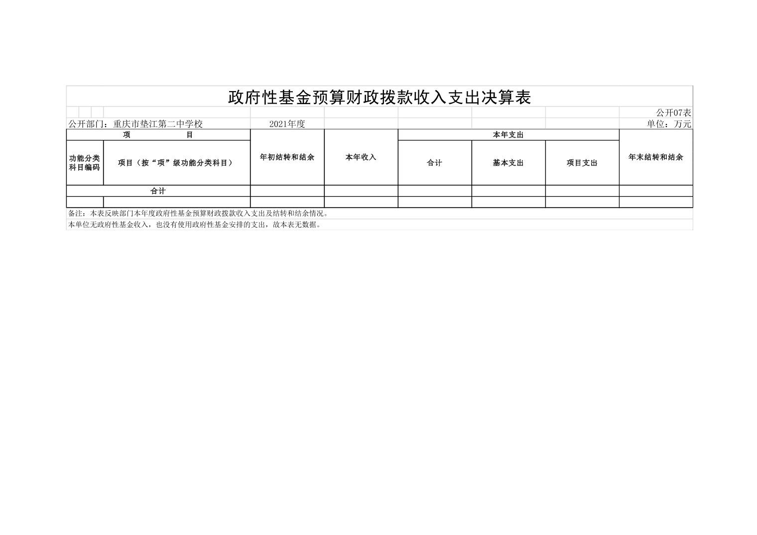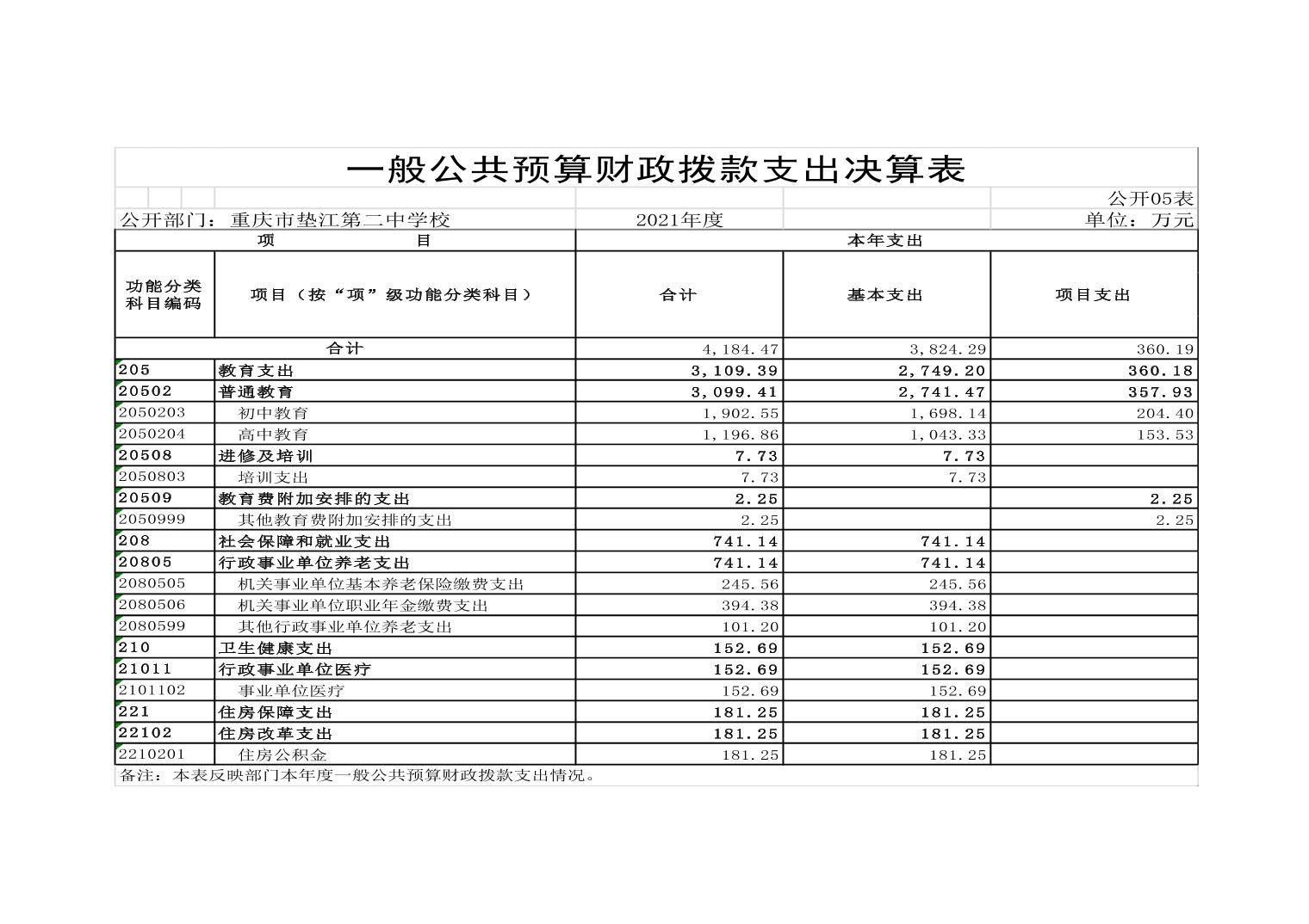 重庆市垫江县第二中学校2021年决算公开
