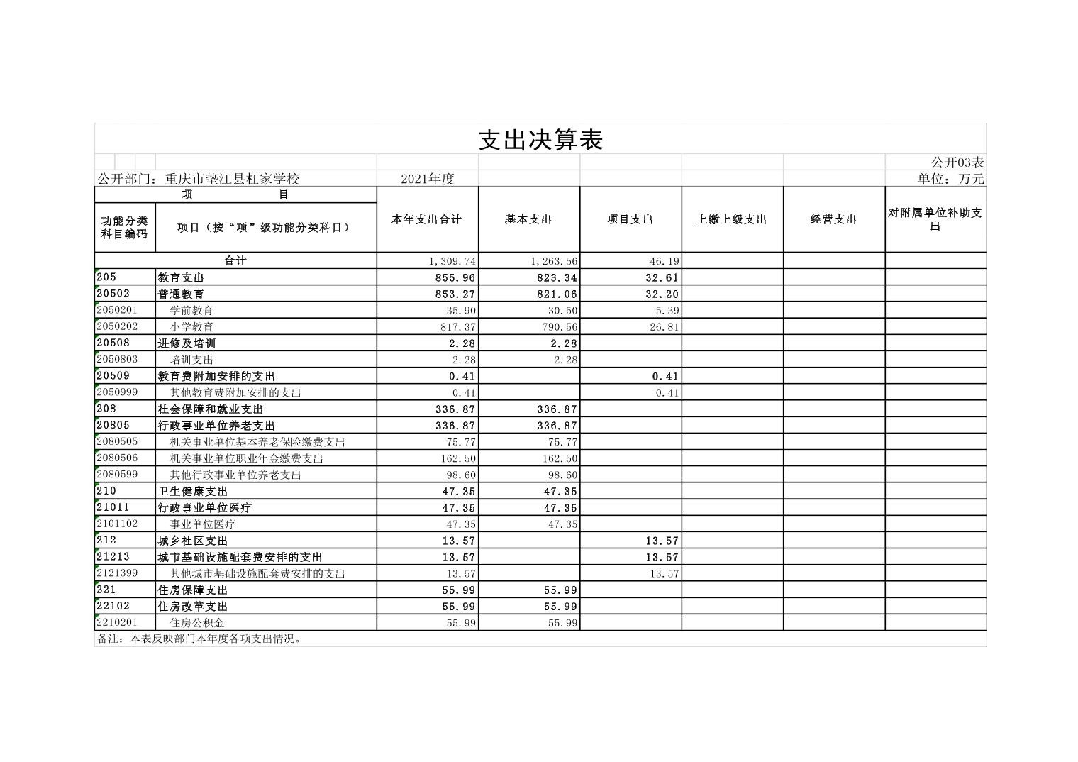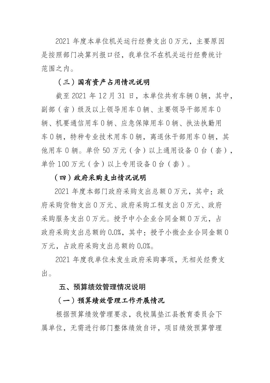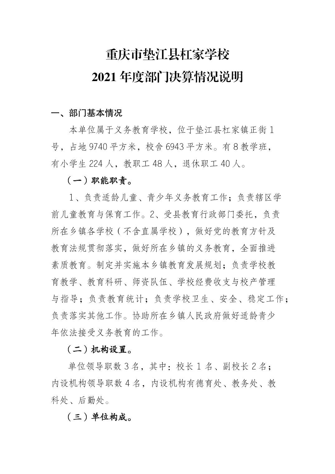 垫江县杠家小学校2021年决算公开