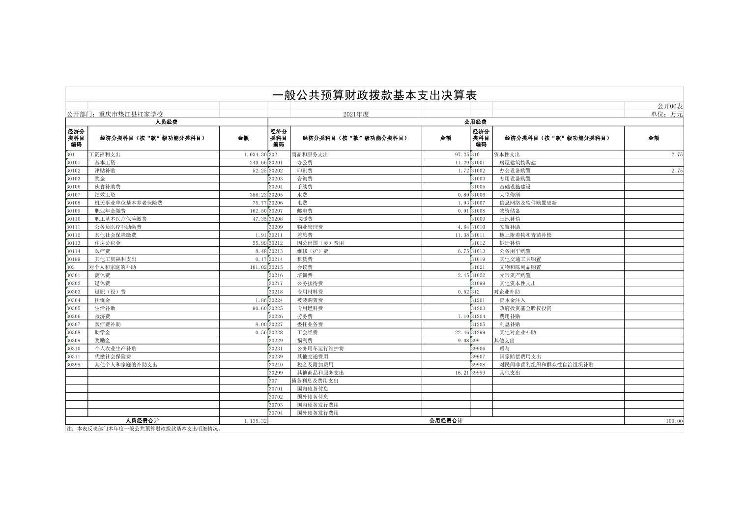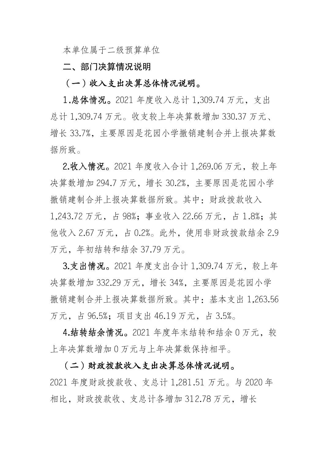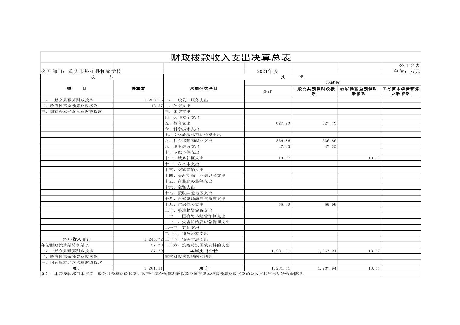 垫江县杠家小学校2021年决算公开