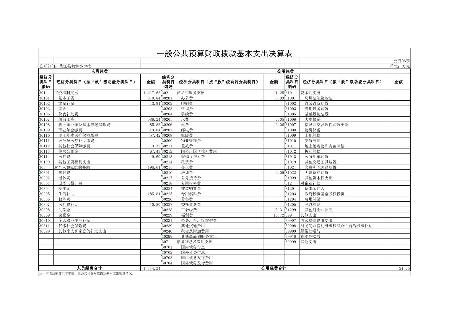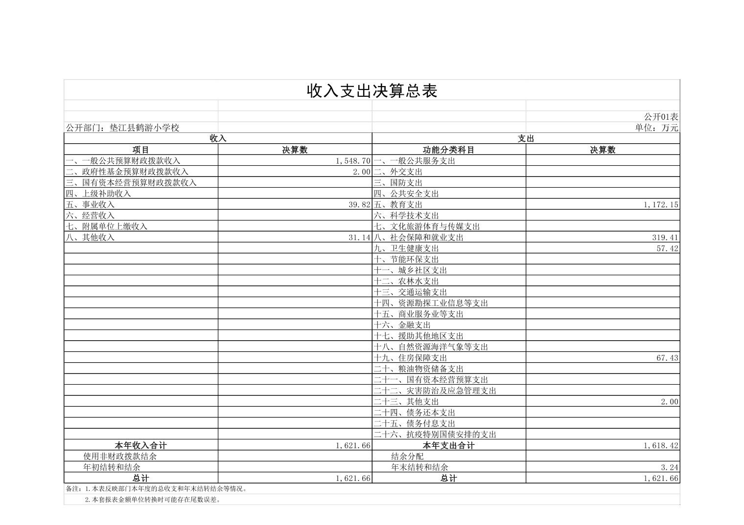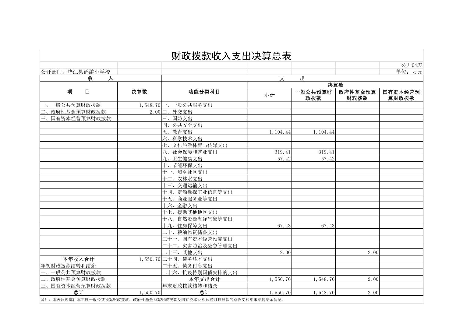 垫江县鹤游小学校2022年决算公开
