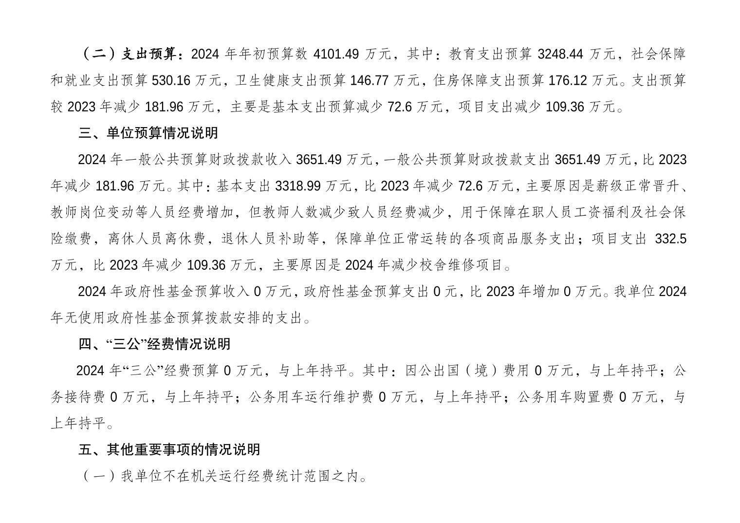 垫江县实验小学校2024年单位预算情况说明