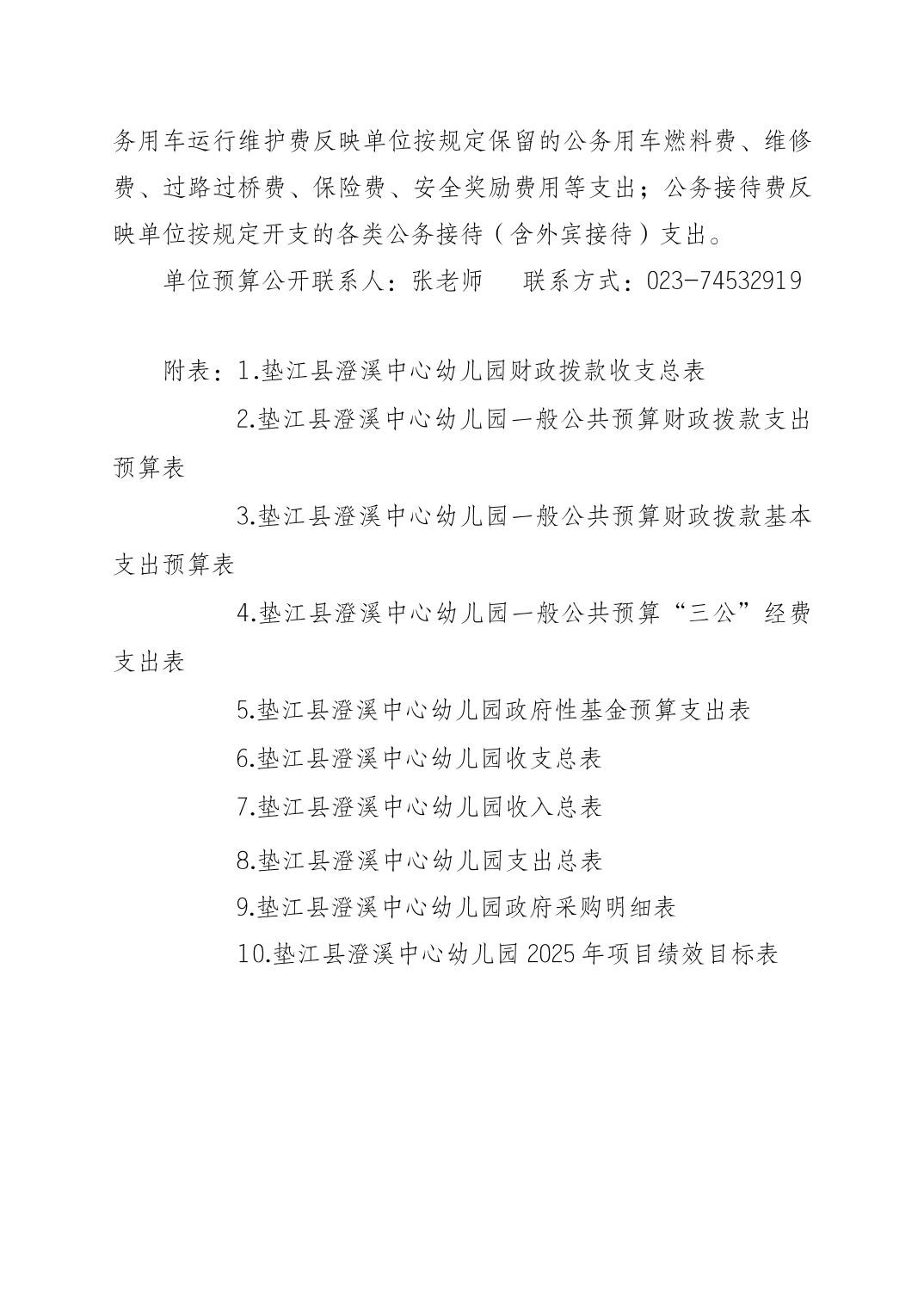 垫江县澄溪中心幼儿园2025年单位预算情况说明