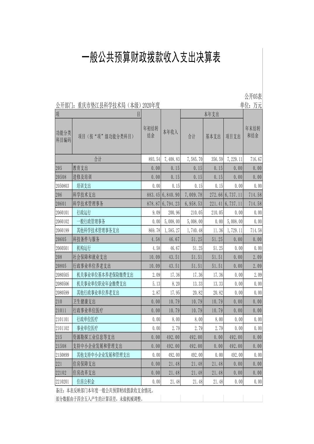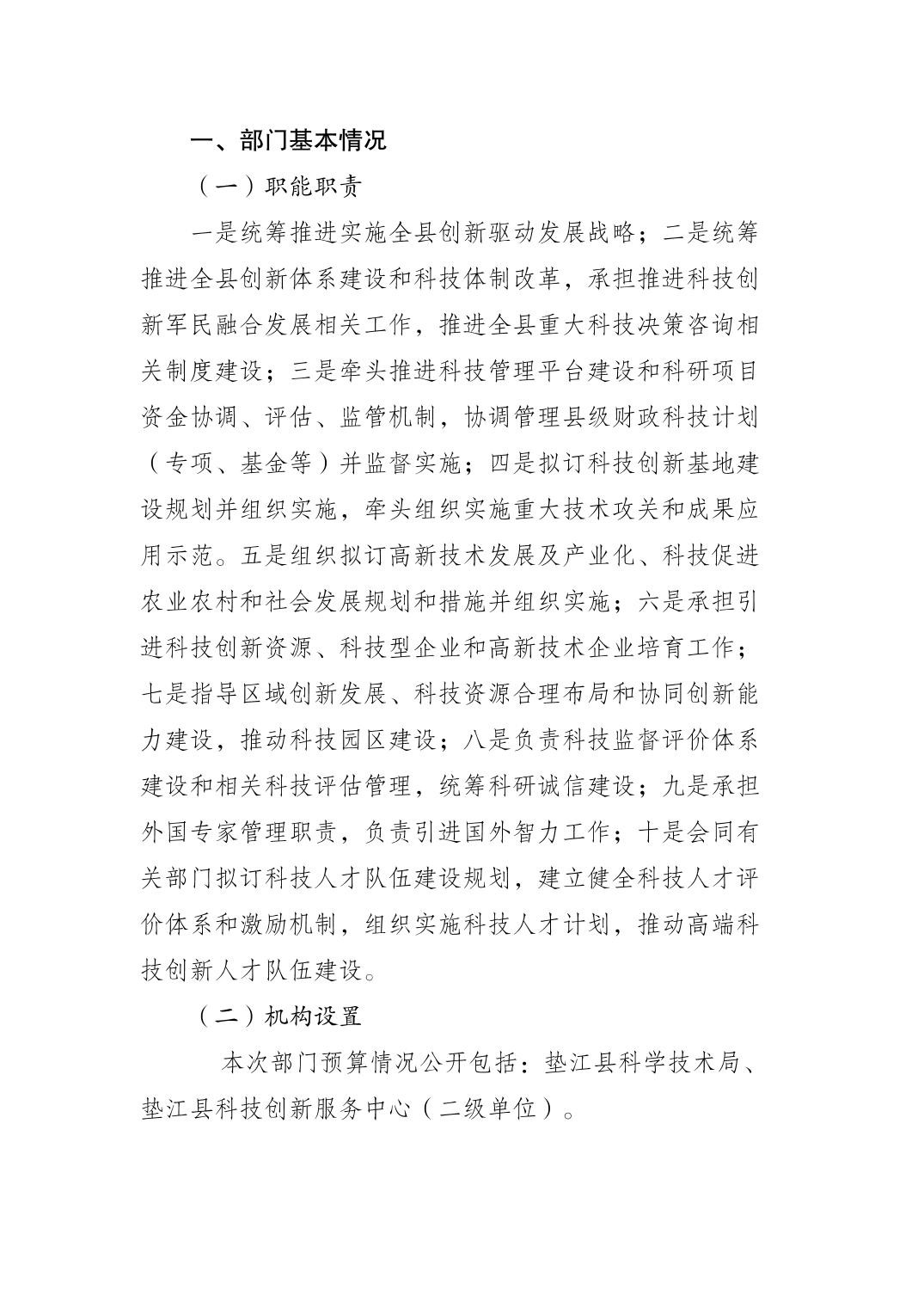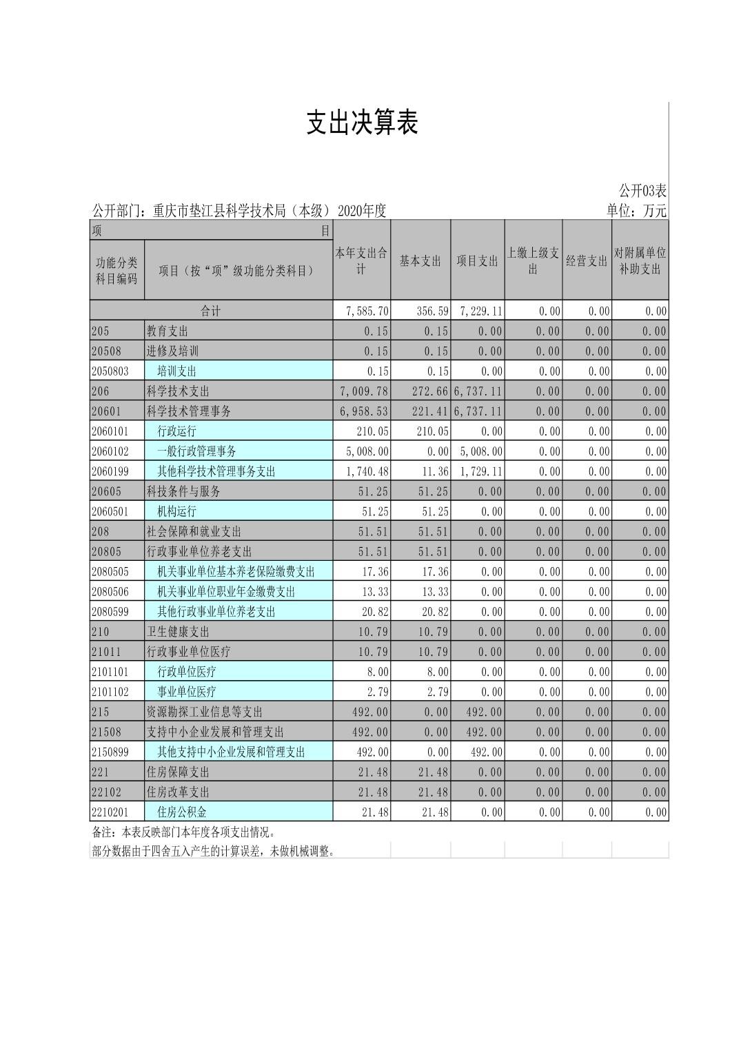重庆市垫江县科学技术局(本级)2020年度部门决算情况说明