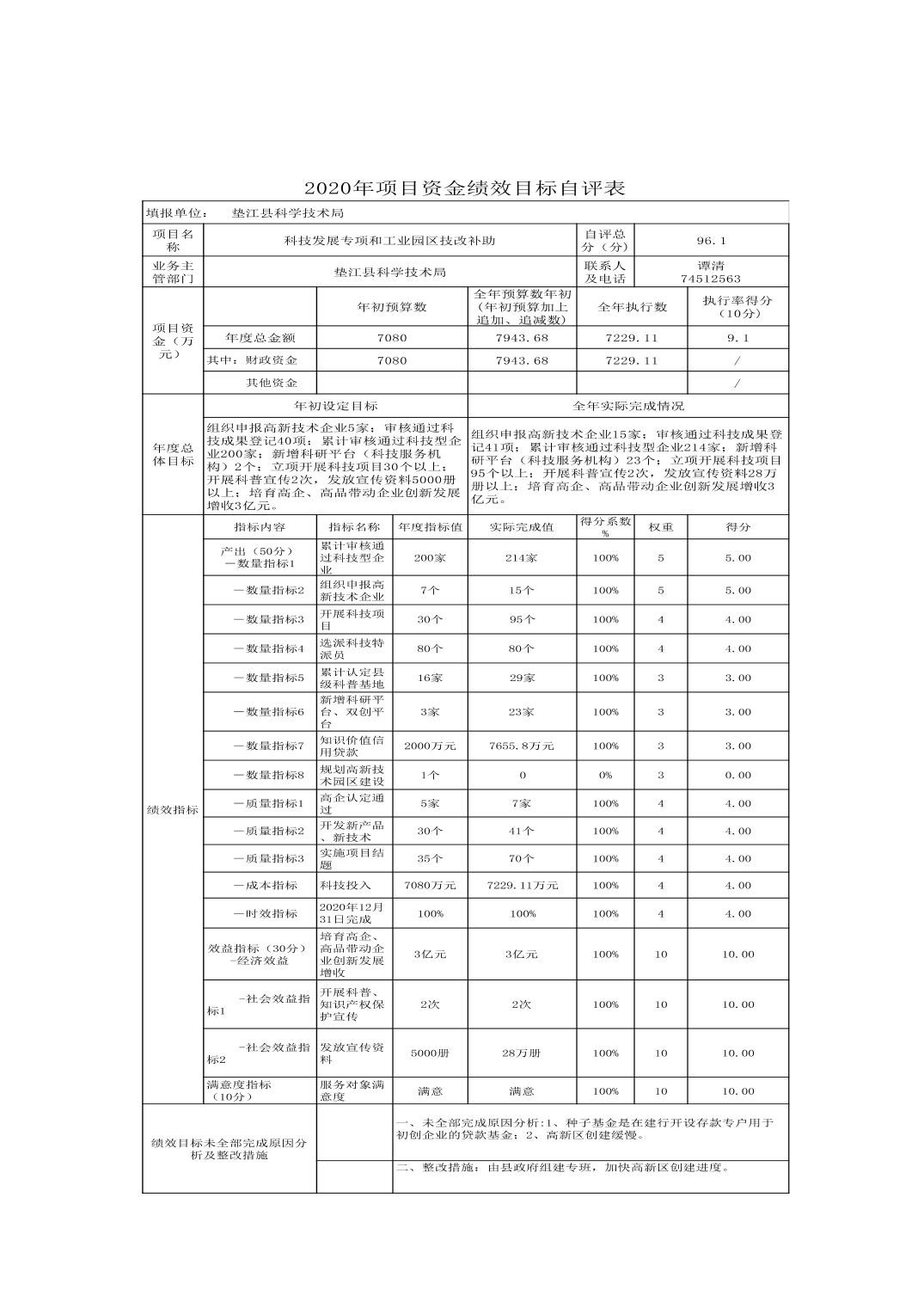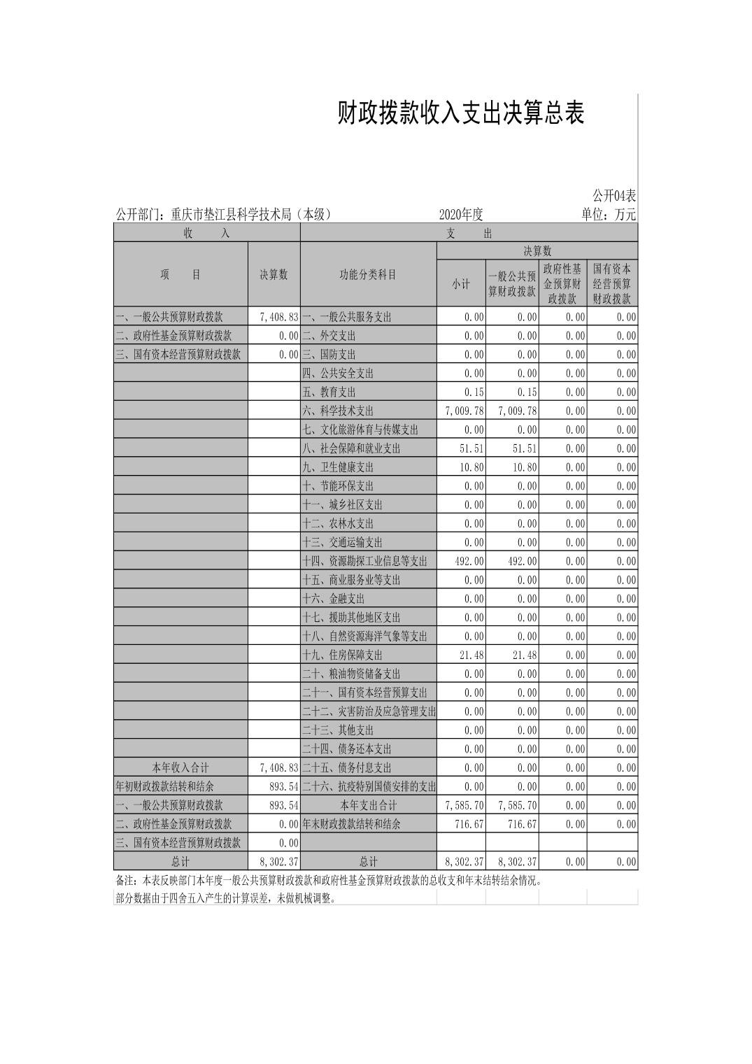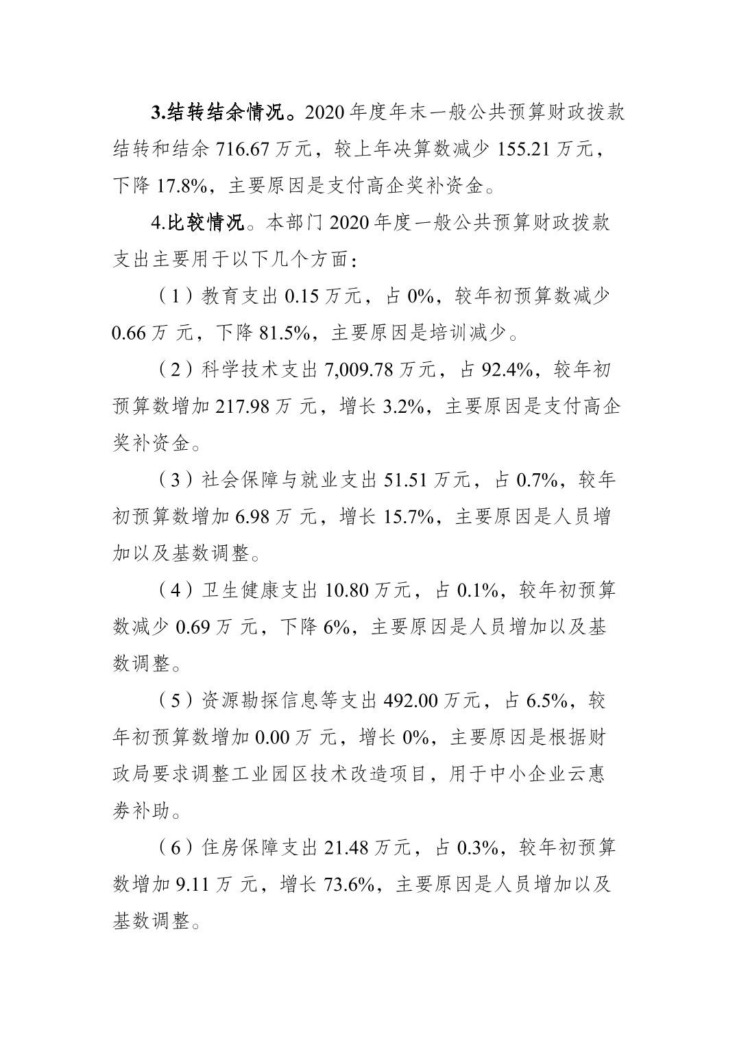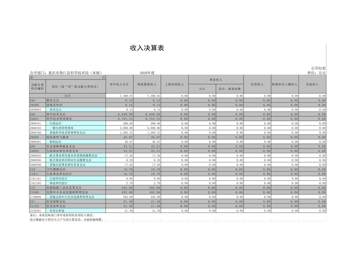 重庆市垫江县科学技术局(本级)2020年度部门决算情况说明