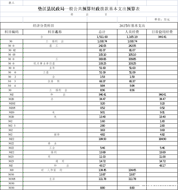 3.垫江县民政局一般公共预算财政拨款基本支出预算表