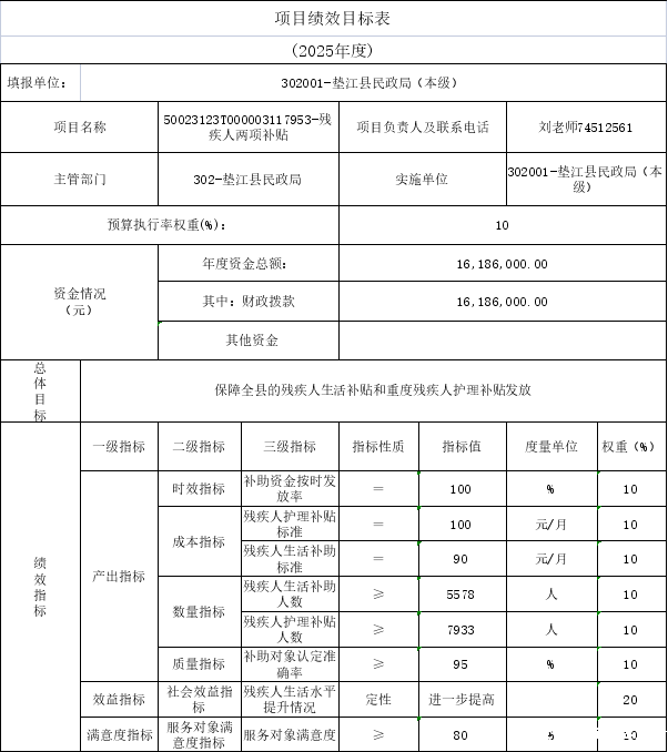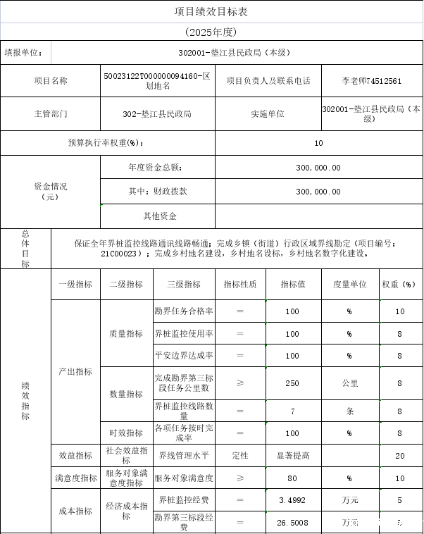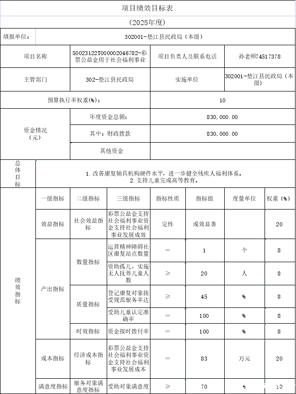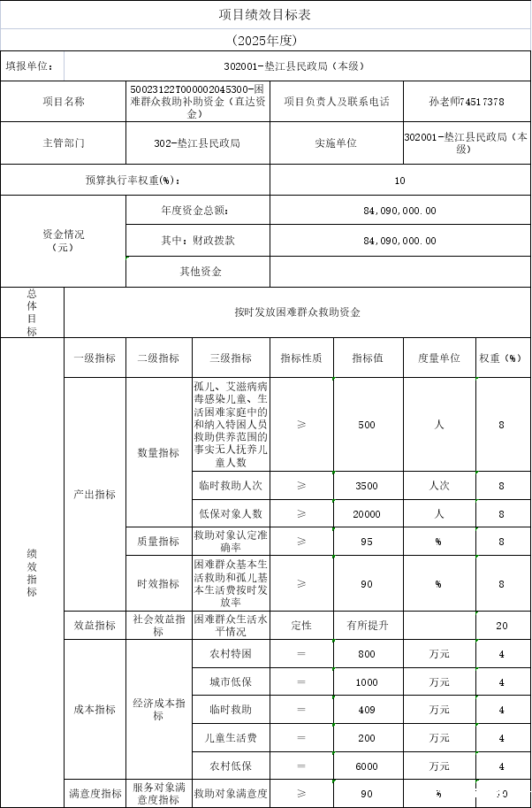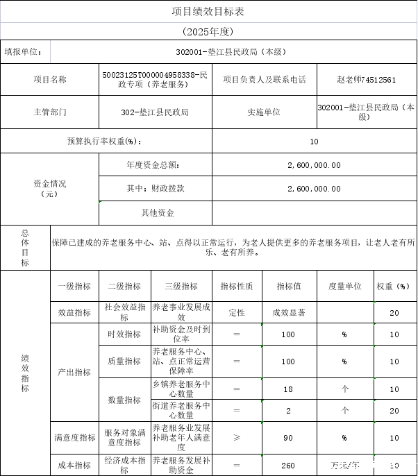 10.垫江县民政局2025年部门整体绩效目标表