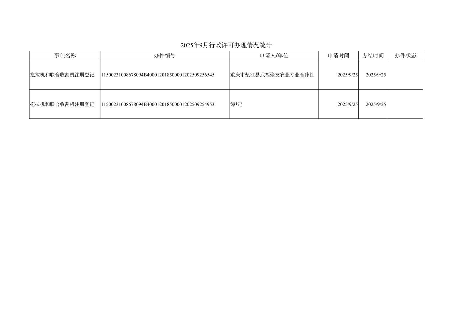 2025年9月行政许可办理情况统计