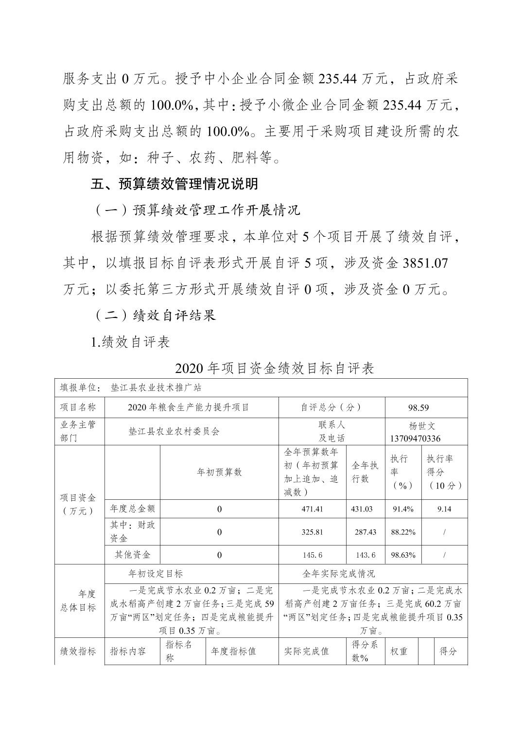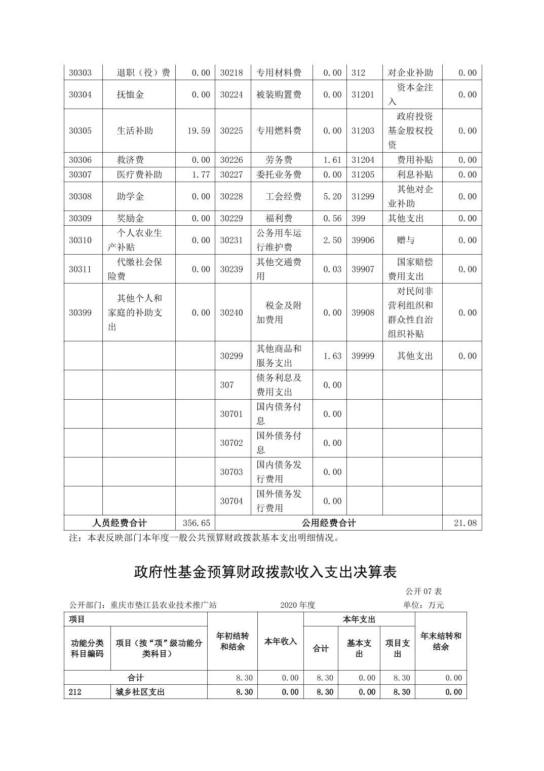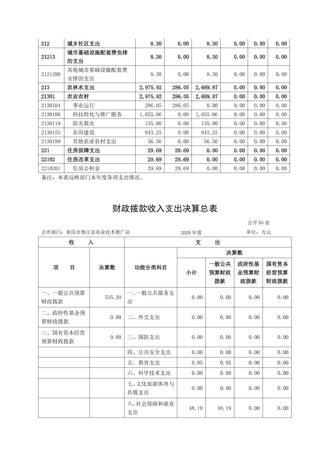 重庆市垫江县农业技术推广站2020年度部门决算情况说明