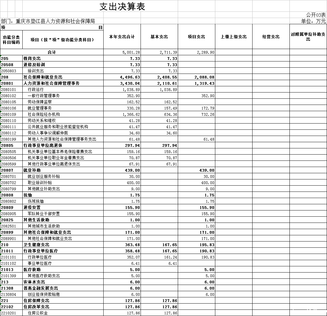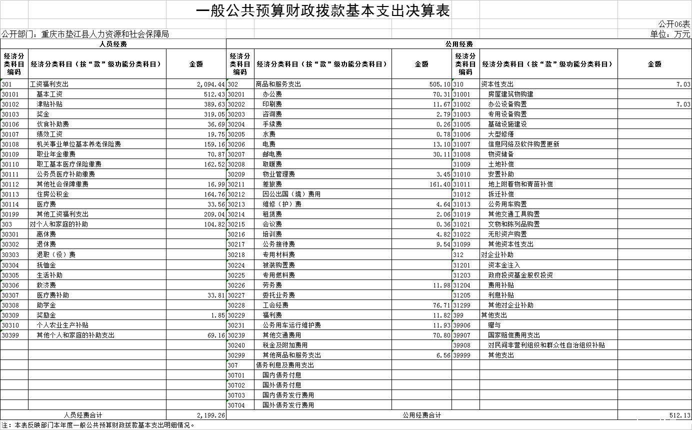 重庆市垫江县人力资源和社会保障局2019年部门决算情况说明