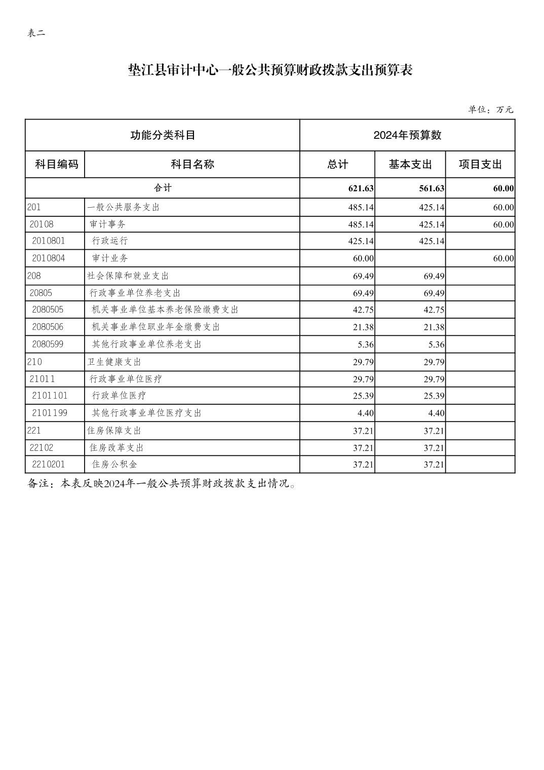 垫江县审计中心2024年单位预算情况说明