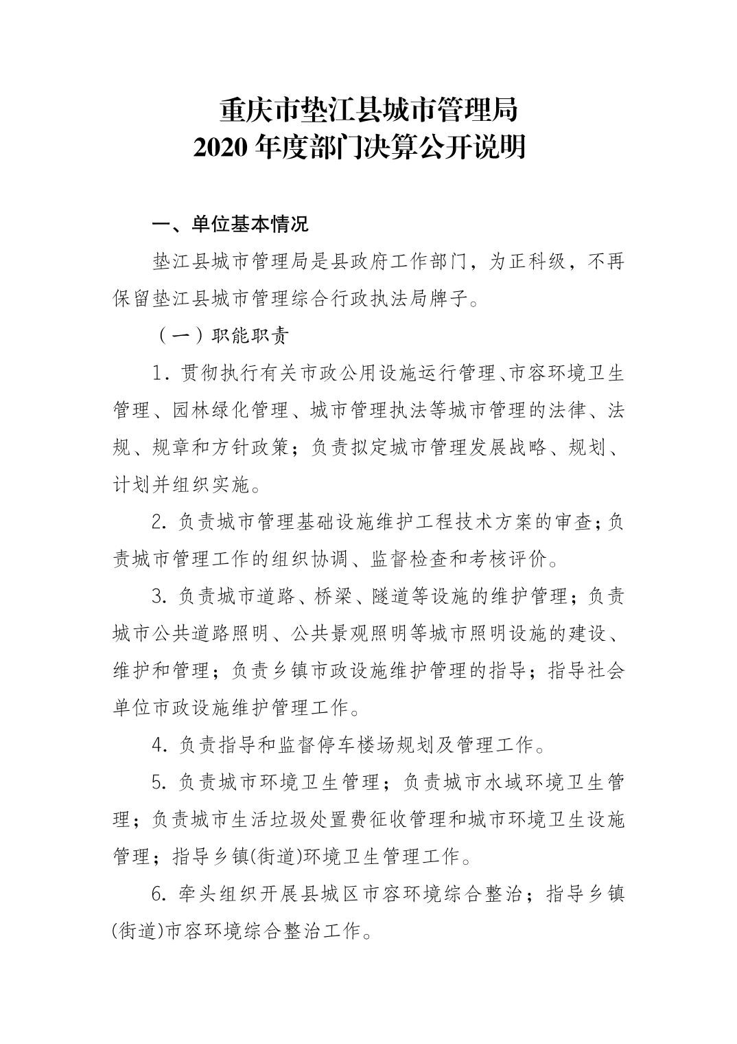 重庆市垫江县城市管理局2020年度部门决算情况说明