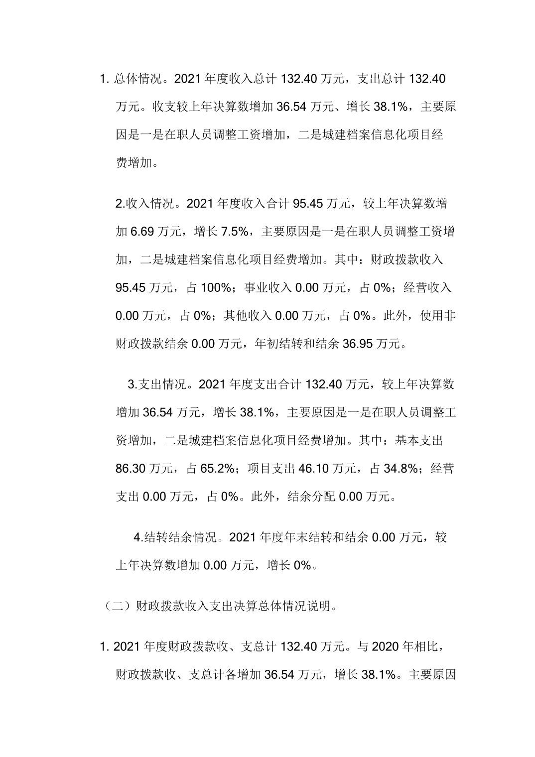 垫江县城乡建设档案室2021年决算公开情况说明