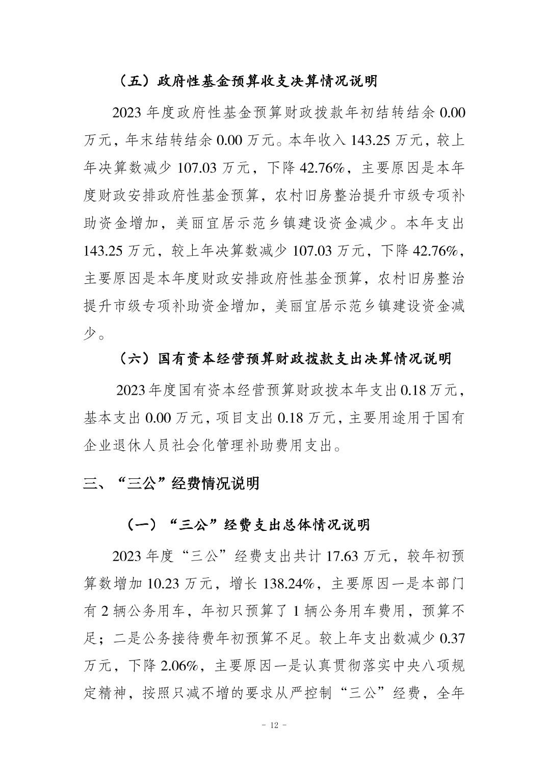 垫江县高安镇人民政府2023年度部门决算公开说明