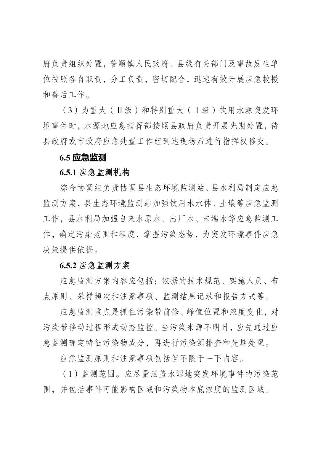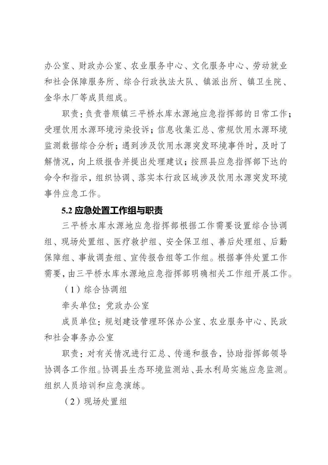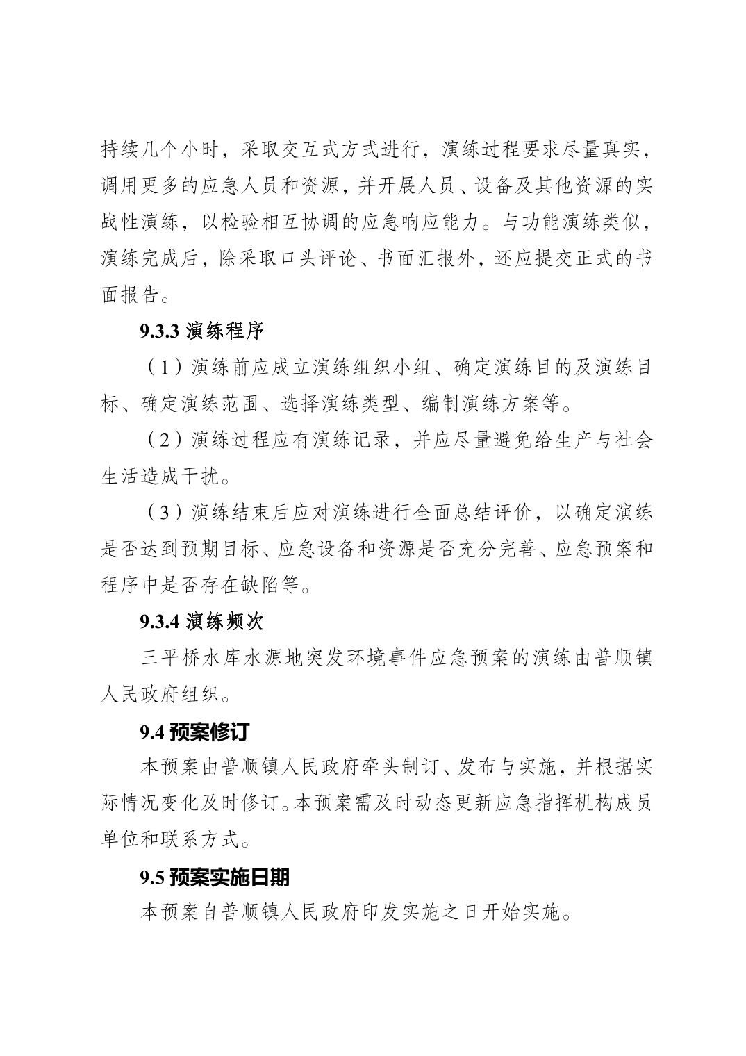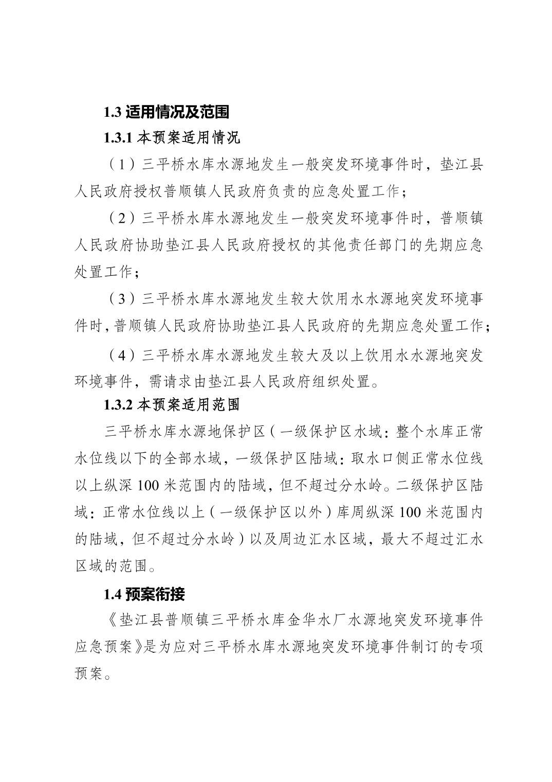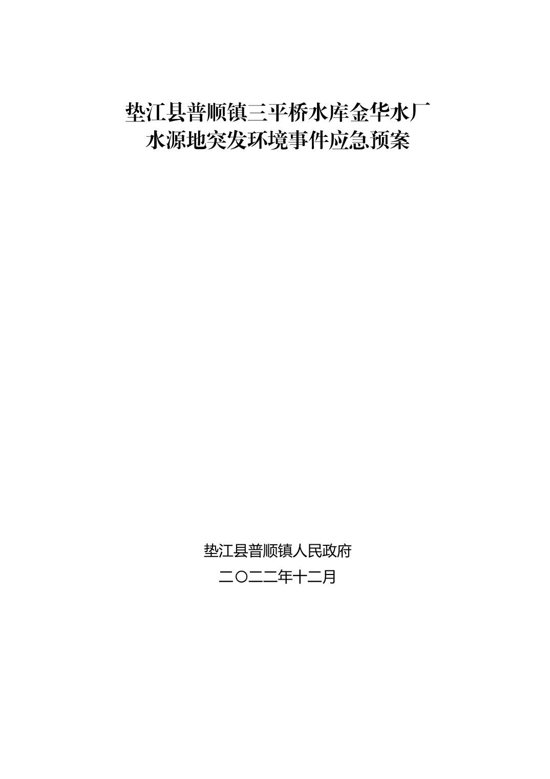 垫江县普顺镇人民政府关于印发普顺镇三平桥水库金华水厂水源地突发环境事件应急预案的通知.pdf