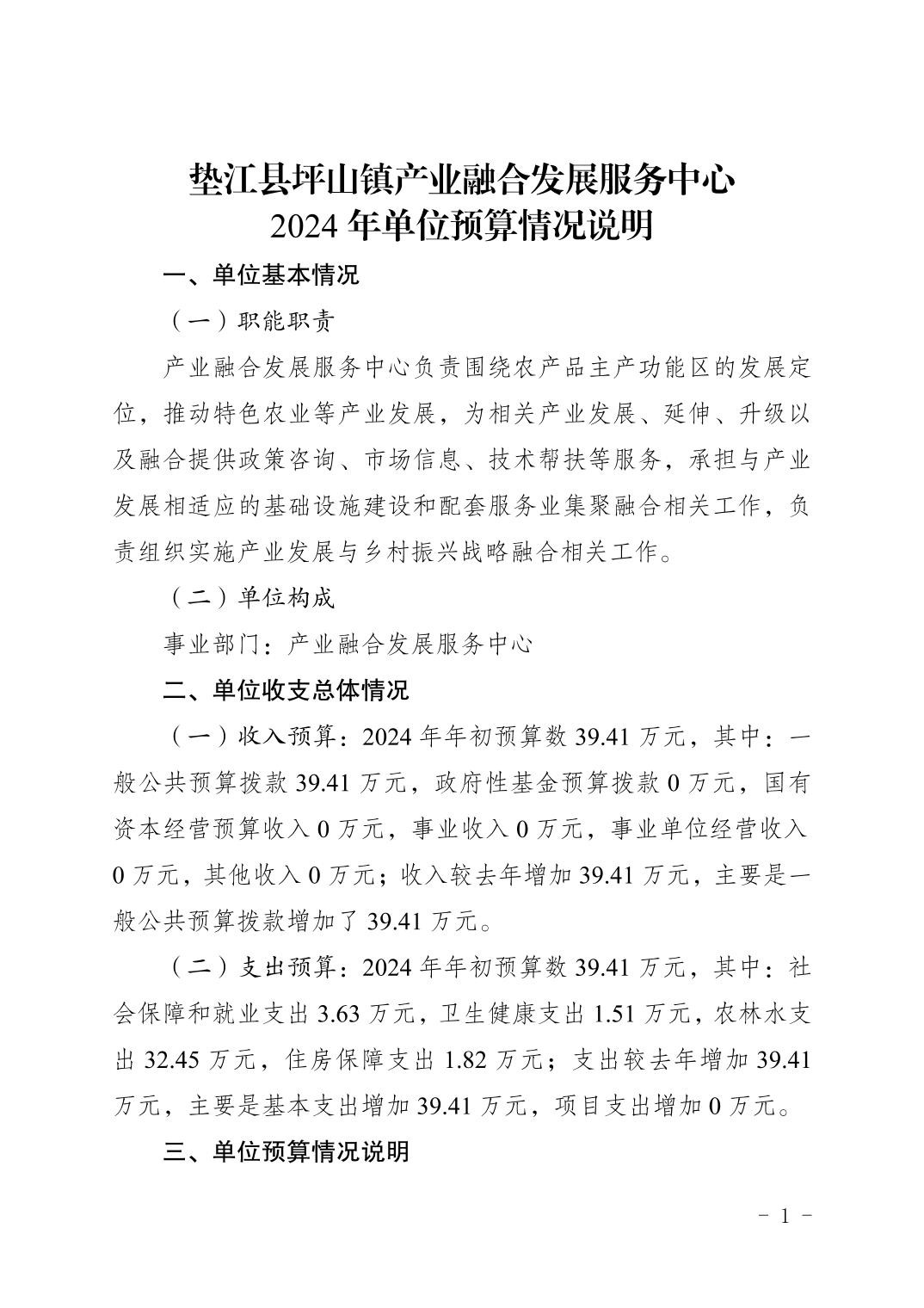 垫江县坪山镇产业融合发展服务中心2024年单位预算情况说明