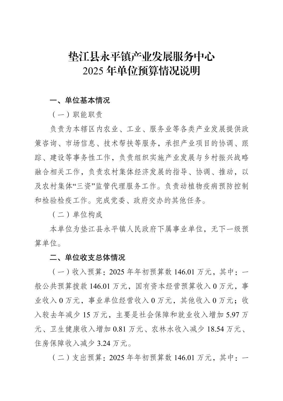垫江县永平镇产业发展服务中心2025年单位预算情况说明.doc垫江县永平镇产业发展服务中心2025年单位预算情况说明.pdf